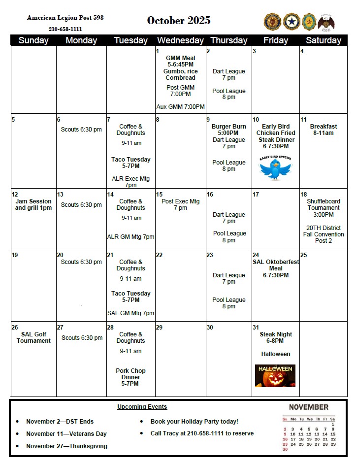If you would like to receive the newsletter by email, please send an email to: alpost593newsletter@yahoo.com